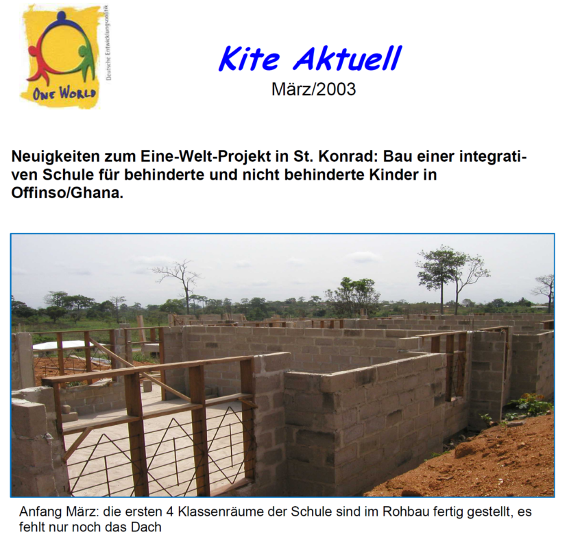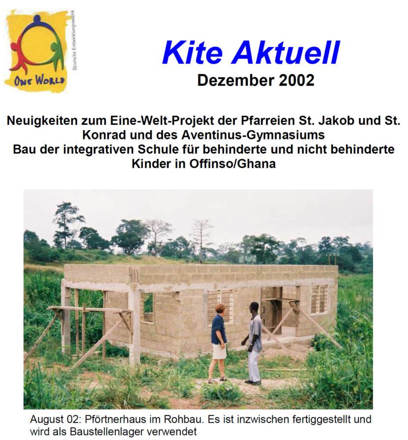 Am 02. August 2003 wurde die IHM Schule in Offinso feierlich eröffnet. Ein knappes Viertel des Gebäudekomplexes war fertiggestellt und die IHM Schwestern planten, im September mit einer ersten Klasse Preparatory School zu beginnen. Pfarrer Max Pinzl von St. Konrad/Burghausen und Kite Mitgründerin Yvonne Ambros reisten gemeinsam nach Offinso, um den Feierlichkeiten beizuwohnen (im Bild […]